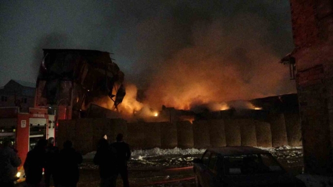 Malatya'da şantiyede çıkan yangın 2 işçiyi yaraladı, büyük hasar gündüz görüntülendi