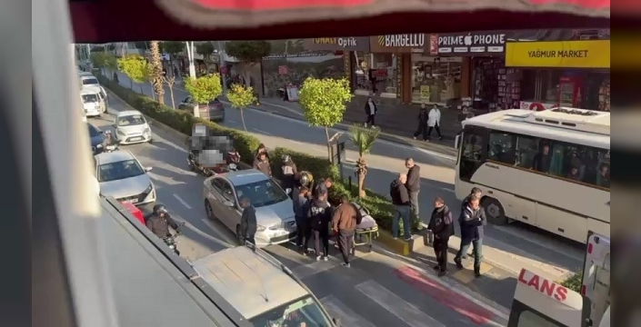 Antalya'nın Manavgat ilçesinde, yaya geçidinden geçmekte olan yayalara yol vermek amacıyla duran bir otomobile arkadan gelen motosiklet çarptı.
