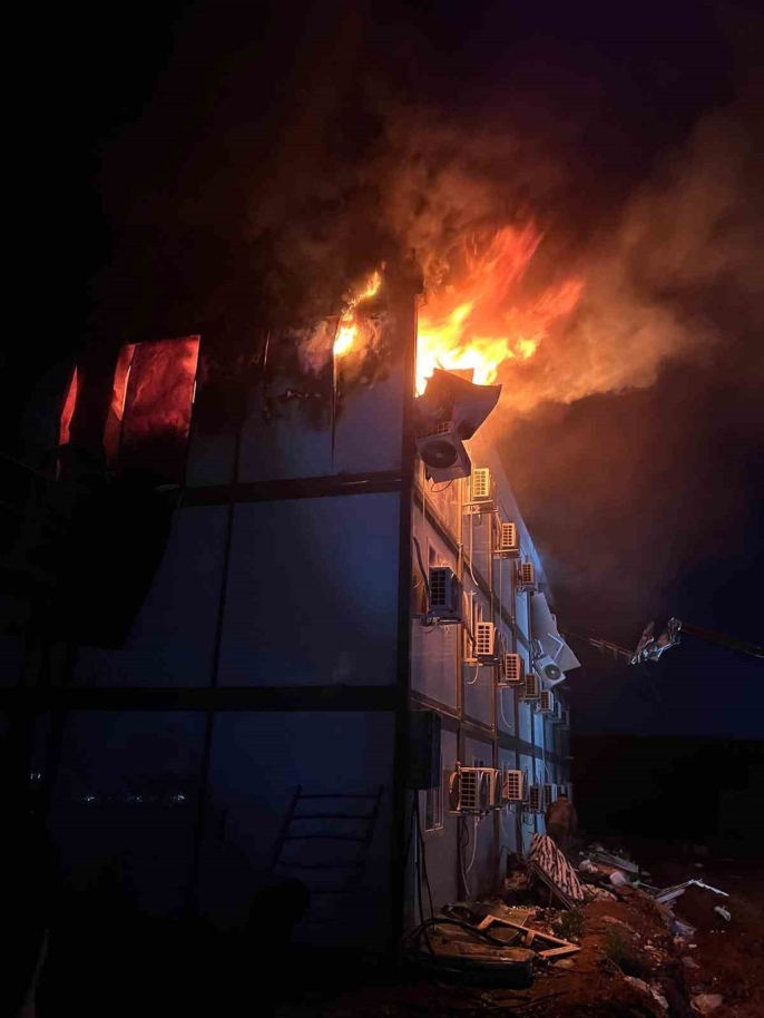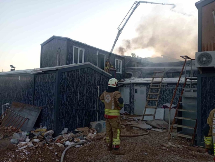 Manisa'nın Şehzadeler ilçesinde inşaat halindeki işçi konteynerinde yangın çıktı. Yangın, yaklaşık 240 işçinin konakladığı alanda meydana geldi.