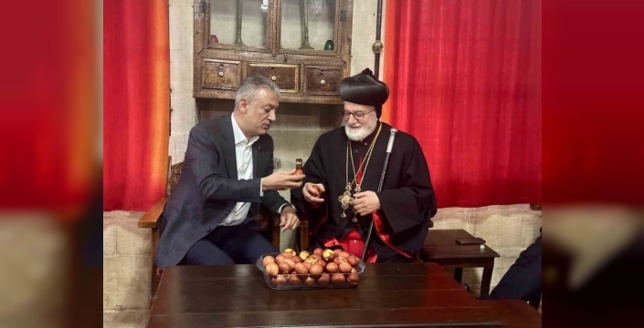 Mardin Valisi Tuncay Akkoyun, kilise kabul salonunda Süryanilerin bayramını kutladı. Vali Akkoyun, Mardin’de farklı dinlere mensup vatandaşların yıllardır huzur ve barış içinde bir arada yaşadığını belirtti. “Farklı etnik yapıda, farklı din ve kültürlere sahip vatandaşlarımız yüzyıllardır birlik, kardeşlik ve huzur içerisinde yaşamaktadırlar,” dedi. Akkoyun, bu mirası daha da güçlendirerek gelecek nesillere devredeceklerini ifade etti. Vali Akkoyun, Filistin ve Gazze’de yaşanan zulme de değinerek, “Savaşların son bulması, acıların sona ermesi temennimizdir. Bizler içeride birliğimizi kuvvetlendireceğiz,” şeklinde konuştu. Ayrıca, terörsüz Türkiye sürecinin önemine vurgu yaparak, “Bu süreç, kardeşlik hukukunun bölgede güçlenmesi için büyük bir fırsattır,” dedi.