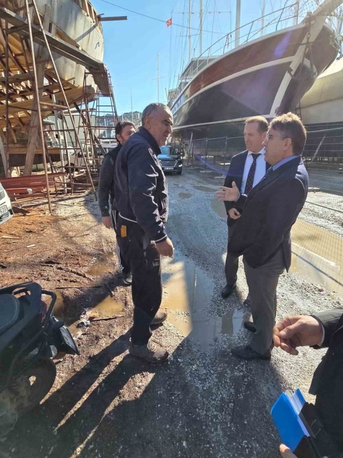 Yapılan incelemelerin, Kültür Varlıklarını Koruma Genel Müdürlüğü'nden alınan ön izinler ve Milli Emlak Müdürlüğü'nün Ege Bozburun Marina İşletmeciliği'ne sağladığı kullanma izinleri çerçevesinde gerçekleştirildiği belirtildi. Marmaris Kaymakamı Nurullah Kaya, Bölge Liman Başkanı Eray Aykanat ve Milli Emlak Müdürü Hakkı Kapçak ile birlikte bölgedeki tersane işletmelerini ziyaret etti.
