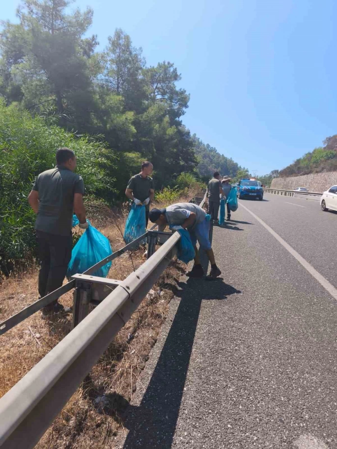 Muğla'nın Marmaris ilçesinde, 'Doğamız miras değil, geleceğin emanetidir' sloganıyla başlatılan çevre temizliği seferberliği devam ediyor. Marmaris Kaymakamlığı öncülüğünde, şehrin giriş noktalarından Taşhan Mevkii'nde gerçekleştirilen temizlik çalışmasına belediye ekipleri de destek verdi.