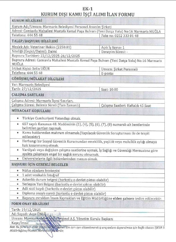 Marmaris Belediyesi Personel Anonim Şirketi’nin İŞKUR üzerinden duyurduğu veteriner hekim alım ilanı, mülakat günü yaşanan aksaklıklar nedeniyle bir adayın tepkisini çekti.
