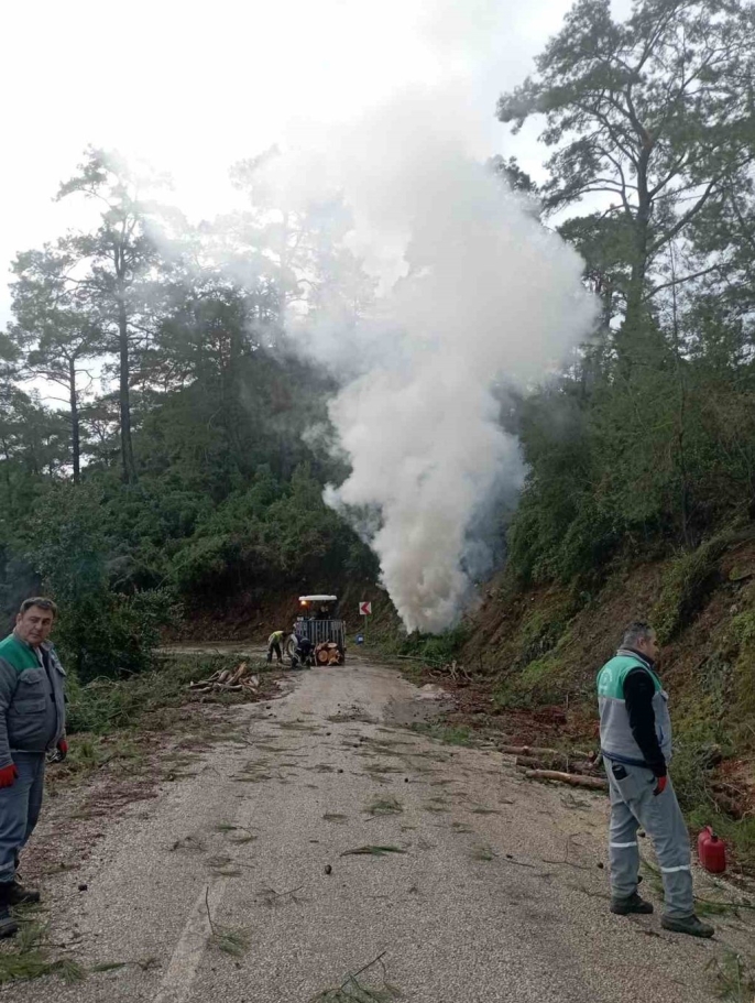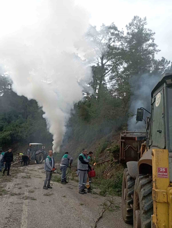 Ekipler, özellikle yol kenarlarında bulunan çalılar ile sürücülerin görüşünü engelleyen ve yangın yollarına uzanan ağaç dallarını buduyor. Çalışmalar kapsamında daha önce kesilen tomrukların alandan kaldırıldığı, küçük parçaların ise kontrollü şekilde yakılarak hem çevre düzenlemesinin sağlandığı hem de yangın riskinin azaltıldığı ifade edildi.