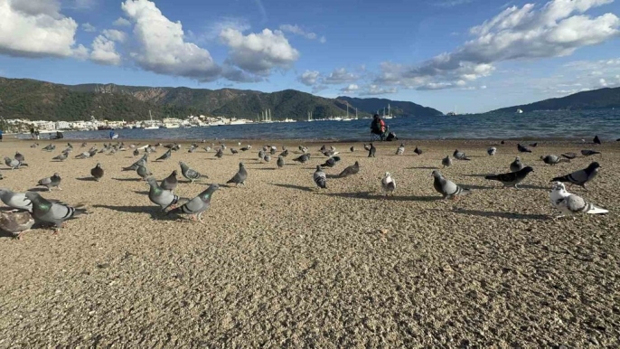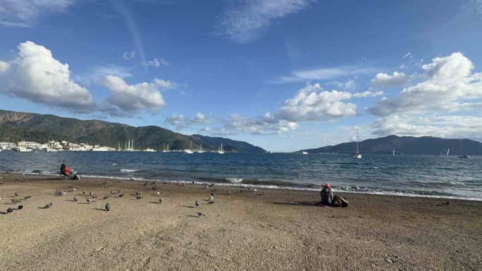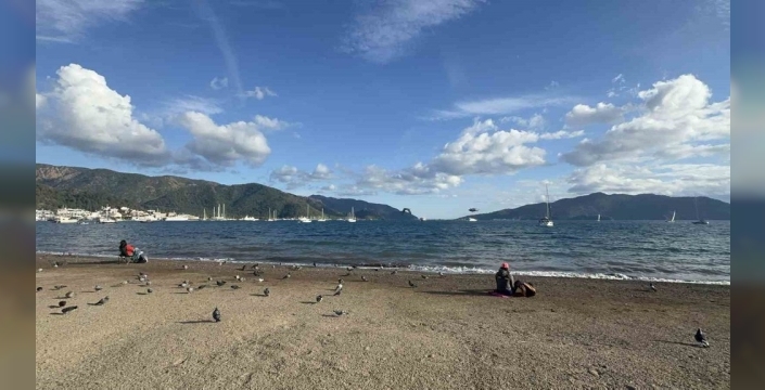 Sıcak havayı değerlendirmek isteyen Marmarisliler, sandalyelerini, termoslarını ve oltalarını alarak plajlara akın etti. Bazıları denizde oltalarını atarken, diğerleri sahildeki güvercinlere ekmek kırıntılarıyla yem vererek güneşin tadını çıkardı.