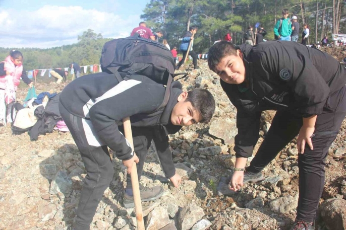 Bugün ise 3 bin fidan için dikim alanında çukurlar hazırlandı ve gönüllülerin katılımıyla servi ve kızılçam fidanları toprakla buluşturuldu. Marmaris Karaca Mahallesi Ovacık mevkisindeki hazırlanan alanda, fidan dikiminin nasıl yapılacağı konusunda gönüllü vatandaşlara, Orman İşletme Müdürlüğü şef ve müdürleri ile orman işçileri tarafından bilgi verildi. Etkinliğe öğrenciler, Sivil Toplum Kuruluşları (STK) temsilcileri ile birlikte Marmaris Kaymakam Vekili Muğla Vali Yardımcısı Ali Yılmaz, Aksaz Garnizon Komutanı Tuğamiral Hamdi Abanoz, Başsavcı Fatmagül Yörük, İlçe Emniyet Müdürü Samed Seyhan, İlçe Jandarma Komutanı Binbaşı Berker Dongul, Milli Parklar Marmaris Müdürü Mesut Gümüş, İlçe Milli Eğitim Müdürü Serap Aksel, İlçe Sağlık Müdürü Dr. İmran İnce ve İlçe Meteoroloji Müdürü Mehmet Altu gibi birçok önemli isim katılarak fidanları toprakla buluşturdu ve can suyunu verdi.