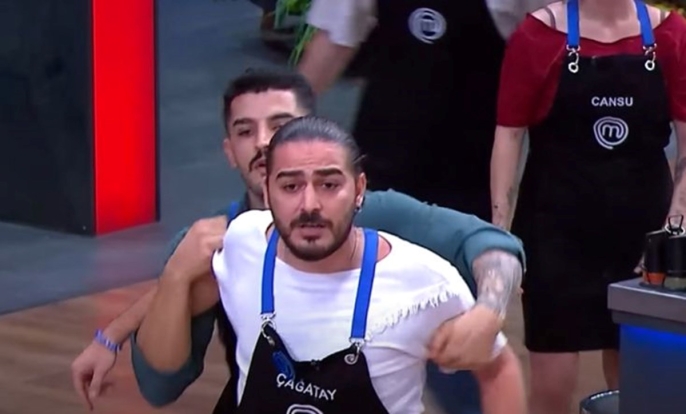 MasterChef Türkiye 2025'in son bölümünde tansiyon yükseldi. Yarışmacılardan Çağatay Doğanoğlu, Mehmet Şef'in uyarısı üzerine kontrolünü kaybederek arkadaşları tarafından dışarı çıkarıldı.
