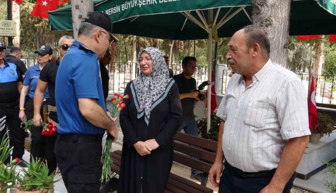 Mersin'de 15 Temmuz Demokrasi ve Milli Birlik Günü etkinlikleri kapsamında şehitlikler ziyaret edildi. Mersin Valisi Atilla Toros ve protokol üyeleri, şehit mezarlarına karanfil bırakarak şehit ailelerine sabır diledi.