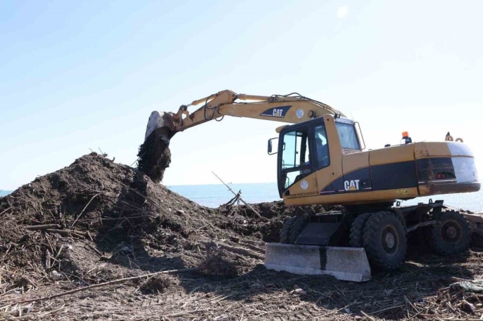 Mersin’de yaşanan sel felaketinin ardından, derelerin denize taşıdığı tonlarca ağaç parçası, evsel atık ve balçık temizlenmeye başlandı.