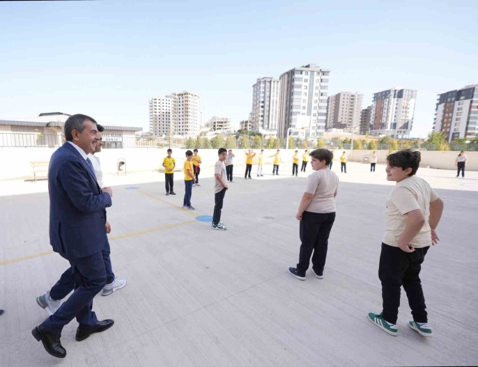 Milli Eğitim Bakanı Yusuf Tekin, Gaziantep'in Şehitkamil ilçesinde bulunan Emel-Galip Hasırcı Ortaokulunu ziyaret etti. Bu sürpriz ziyaret kapsamında Bakan Tekin, önce okul bahçesinde beden eğitimi dersi alan öğrencilerle sohbet etti.