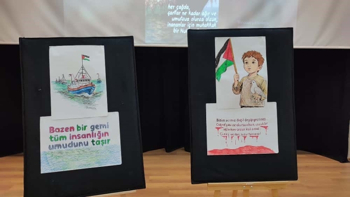 Milli Eğitim Bakanlığı'nın talimatıyla, İsrail'in Gazze'ye yönelik soykırımının ikinci yılında ülke genelindeki tüm okullarda eş zamanlı olarak 'Filistin ve Gazze' temalı farkındalık etkinlikleri düzenlendi.