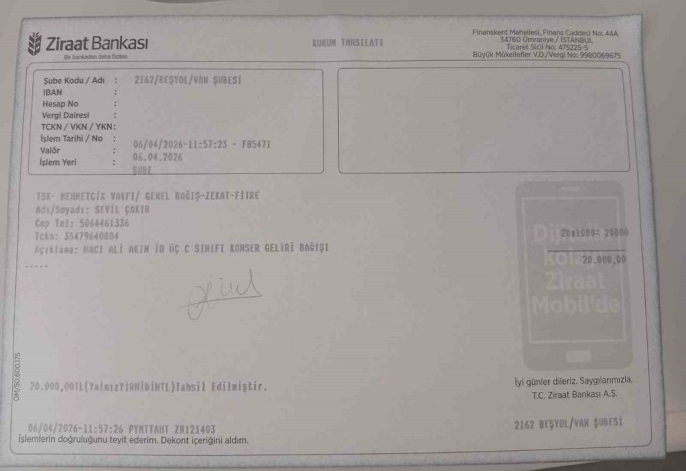 Van'ın İpekyolu ilçesinde bulunan Hacı Ali Akın İlkokulu'nun minik öğrencileri, düzenledikleri 'Van Türküleri' konserinden elde ettikleri geliri Mehmetçik Vakfı'na bağışlayarak örnek bir davranış sergiledi. Bu duyarlı hareket, hem öğrenci velilerinden hem de halktan büyük takdir topladı.