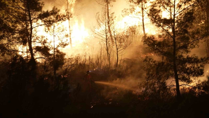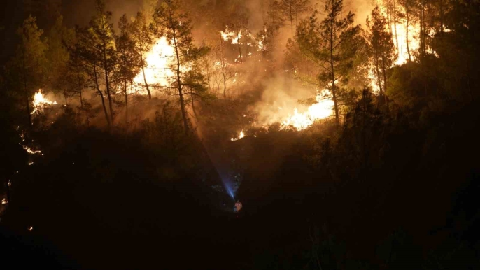 Muğla'nın Köyceğiz ve Milas ilçelerinde çıkan orman yangınlarıyla mücadele, gece boyunca devam etti. Ateşle savaşan ekipler, karanlığa aldırmadan canla başla çalıştı, alevleri kontrol altına almaya çalıştı.