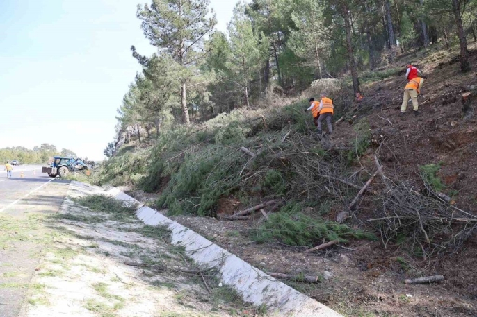 Orman yangınlarıyla mücadelede "önleyici faaliyetler" kapsamında Muğla Orman Bölge Müdürlüğü'nün koordinasyonunda devam eden çalışmalar, muhtemel bir yangının karayolundan ormanlık alanlara sıçramasını engellemeyi hedefliyor. Bu önemli güzergahlardan biri olan Muğla-Denizli karayolu, yangın riskini azaltmak amacıyla özel olarak ele alınıyor.