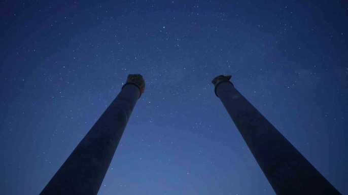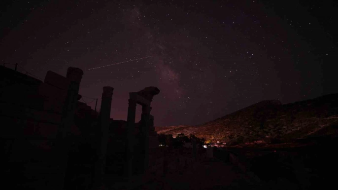'Yıldız kayması' olarak bilinen bu gök olayı, antik kentin yüzlerce yıllık yapılarıyla bütünleşerek, unutulmaz bir manzara oluşturdu. Meteor yağmurunun bu eşsiz görüntüsü, fotoğrafçıların objektiflerine yansıdı.