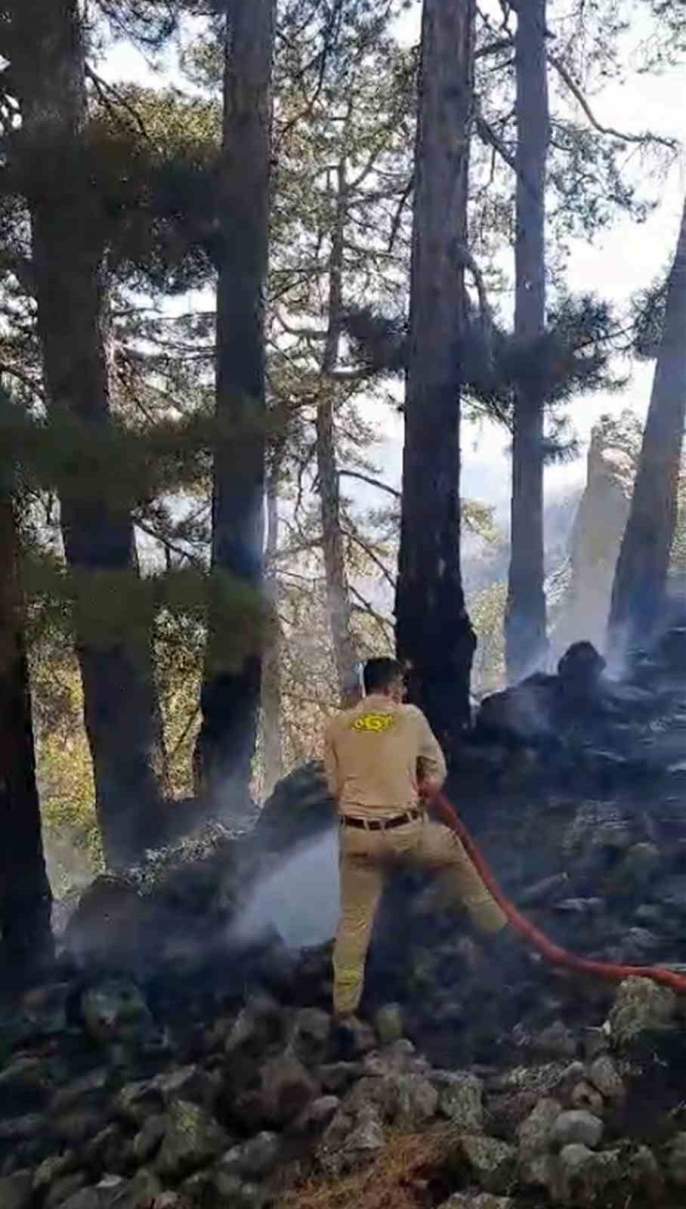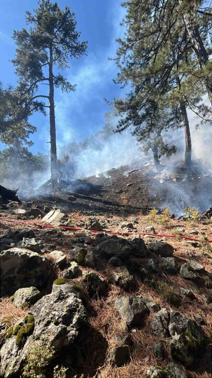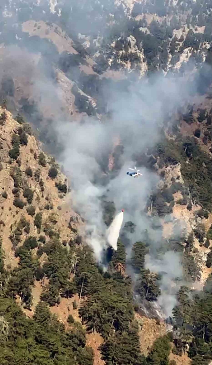Helikopterlerin sık sık sorti yapması sonucu yangın kontrol altına alınırken, ekipler şu anda bölgede soğutma çalışmaları yürütüyor.