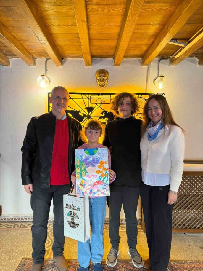 Muğla Büyükşehir Belediyesi'nin aktif bir üyesi olduğu Mayors for Peace (Barış için Belediye Başkanları) tarafından düzenlenen 2025 Çocuk Resim Yarışması'nda, Muğla'dan katılan Elif Kayra Taşkaya, 'Mayors for Peace Genel Sekreteri Ödülü'nü kazanarak büyük bir başarıya imza attı.
