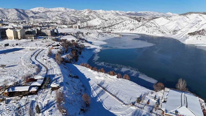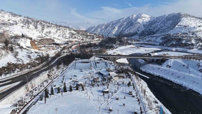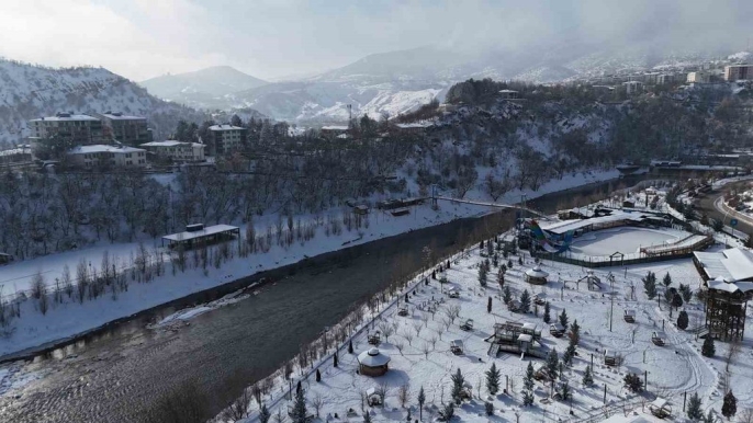 Munzur Dağları’nın eteklerinden süzülerek kent merkezinin kıyısından geçen Munzur Nehri ise karla kaplı doğanın ortasında oluşturduğu görüntüyle dikkat çekti. Soğuk havanın etkisiyle zaman zaman buzlanmaların da görüldüğü kentte, karla kaplanan dağ silsileleri ve beyaz örtüyle çevrelenen Munzur Vadisi kartpostallık görüntüler oluşturdu.