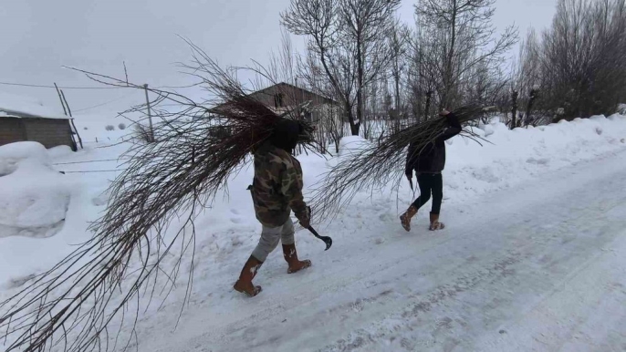 Türkiye’nin kar yağışı en fazla olan illerinden Muş’ta, besiciler kış aylarında hayvanlarına alternatif yem yöntemleri geliştirmeye devam ediyor. Kar üzerinde hayvanlarını beslemenin zorluğunu yaşayan üreticiler, bahçelerindeki söğüt ağaçlarını budayarak bu dalları yem olarak kullanıyor.