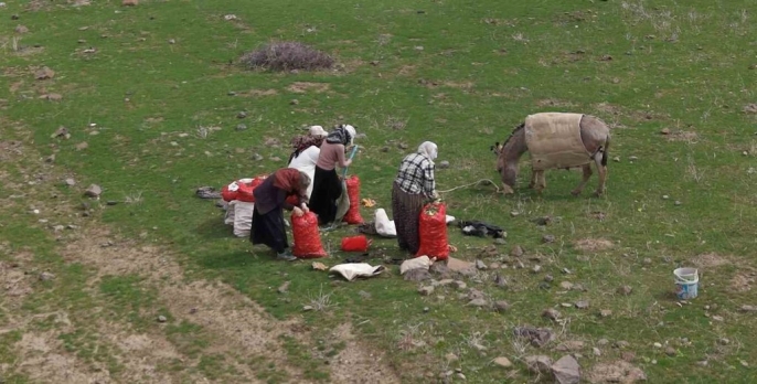 Muş’ta baharın gelişiyle birlikte, dağlarda kendiliğinden yetişen çiriş otu, bölge halkı için önemli bir gelir kaynağı olmaya başladı.