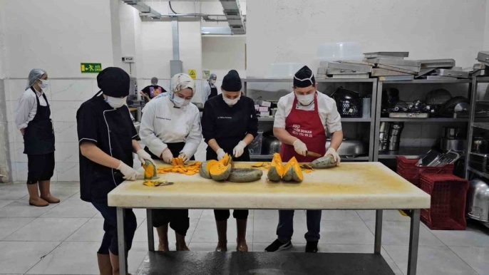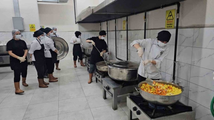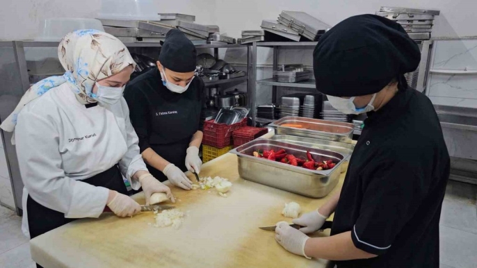 Nazilli Nahit Menteşe Kız Mesleki ve Teknik Lisesi Aşçılık Bölümü öğrencileri, iftar programlarında hazırladıkları yemekleri ikram etti.