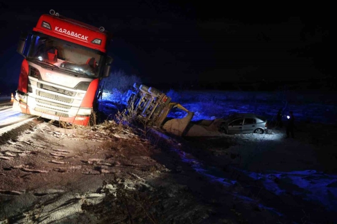 Edinilen bilgilere göre, Nevşehir-Aksaray karayolunun Karapınar Kasabası mevkiinde Mustafa A. yönetimindeki 38 AJY 094 plakalı tır, buzlanma nedeniyle kayarak karşı şeride geçti. Kayarak karşı şeride geçen tır, önce Cahit D. yönetimindeki 48 BSK 78 plakalı otomobile, ardından da Kadir Ö. yönetimindeki 50 ADP 971 plakalı otomobile çarptı. Çarpmanın etkisiyle otomobiller şarampole devrildi, tırın dorsesi de koptu.