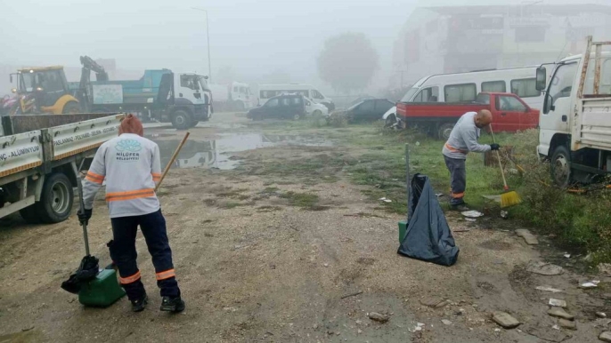 Pazar sabahı erken saatlerde NİLTİM’de harekete geçen Nilüfer Belediyesi ekipleri, bölgede yoğun bir mesai harcadı. 34 personel ve 6 araçla gerçekleştirilen temizlik çalışmasında ekipler, bölgede biriken çöpleri ve çalışmalardan kaynaklanan atıkları topladı. Gün boyu süren temizlik operasyonunda NİLTİM’in farklı noktaları titizlikle temizlendi.