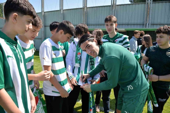 Şahinkaya Eğitim Kurumları öğrencileri, Bursaspor'un antrenmanında futbolcularıyla bir araya gelerek şampiyonluklarını kutladı.