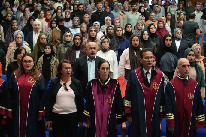Rektör Aydın, konuşmasında Filistin konusuna da değinerek, soykırımcı İsrail'in Gazze'ye insani yardım götüren Sumud Filosu'na yönelik saldırısını kınadı. Gelinen noktada Türkiye Cumhuriyeti Devleti'nin gücü eline almasından başka seçenek kalmadığını belirten Aydın, bu hedefe ulaşmada üniversitelere önemli görevler düştüğünü ifade etti. "Tarihin terazisine bizleri yüzü ak olarak çıkaracak cevherse Anadolu mayasına yansıyan hikmet ve gayrettir" diye konuştu.