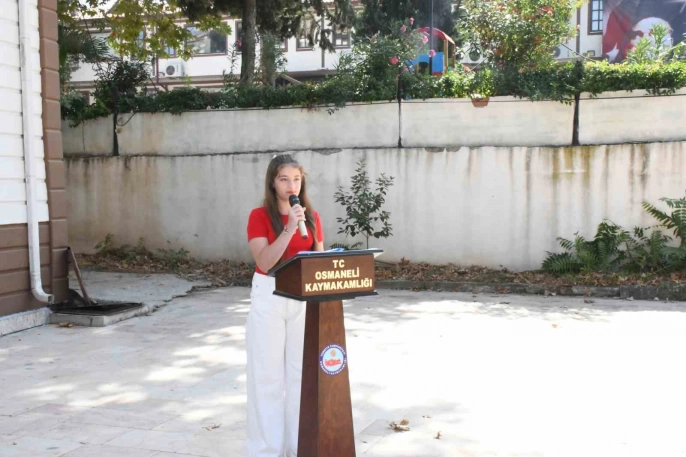 Osmaneli Jandarma Komutanlığı'nda görevli Astsubay Çavuş Songül Yoran, 30 Ağustos Zafer Bayramı'nın önemini vurgulayan bir konuşma gerçekleştirdi. Öğrencilerin şiirlerinin okunmasıyla devam eden program, Osmaneli Kaymakamı Abdüssamed Kılıç'ın makamında tebrikleri kabul etmesiyle son buldu. Programda şehitler için dua edildi.