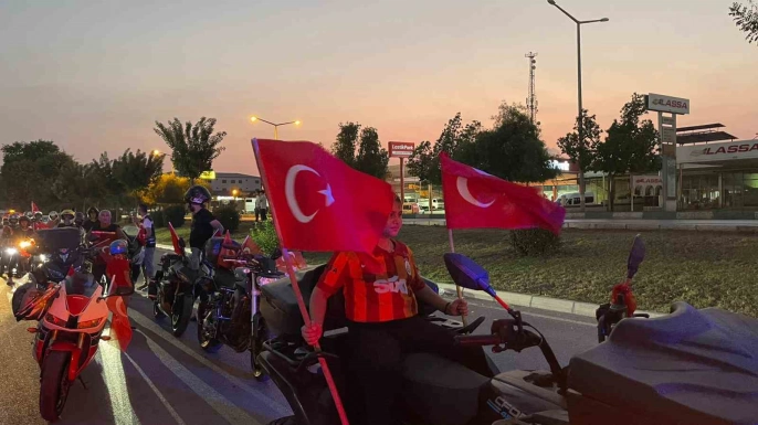 Motosikletleriyle şehir turu atan motorcular, araçlarını Türk bayraklarıyla süsleyerek vatandaşlardan büyük ilgi gördü. Kortej, Devlet Bahçeli Meydanı’nda saygı duruşu ve İstiklal Marşı’nın okunmasıyla tamamlandı.