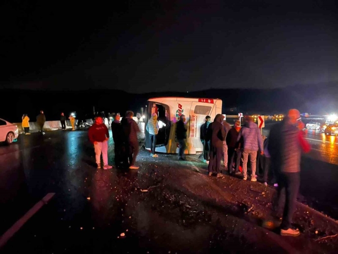 Devrilen otobüsün içinde bulunan 3 yolcu, olay yerinde sağlık ekiplerinin ilk müdahalesinin ardından çevredeki hastanelere sevk edildi. Yaralıların durumları hakkında henüz detaylı bilgi alınamazken, kazayla ilgili kapsamlı bir inceleme başlatıldığı öğrenildi.