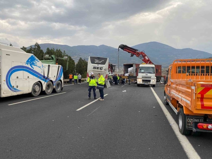 Kaza, saat 05.00 sıralarında, H.K. yönetimindeki çekici ve dorse aracının lastiğinin patlaması sonucu durmasıyla başladı. Arkadan gelen A.A. yönetimindeki yolcu otobüsü, duran araca çarparak büyük bir hasara neden oldu. Olay yerine hemen jandarma, polis, sağlık ve itfaiye ekipleri sevk edildi.