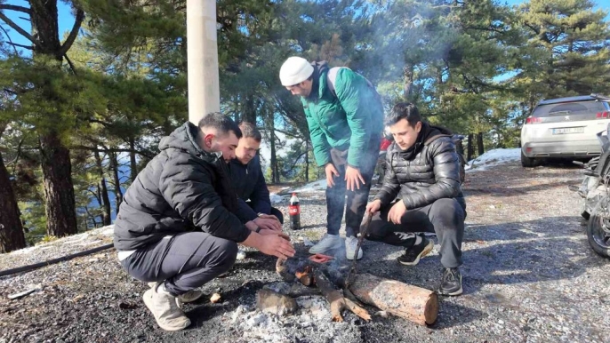 Karla kaplı ağaç dallarının eşlik ettiği Paşa Yaylası'nda, vatandaşlar ateş yakarak sucuk ekmek keyfi yaptı. Gün boyu süren kar eğlenceleri, bölgeye renkli görüntüler kattı.