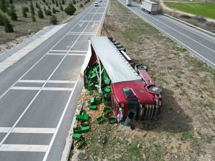 Afyonkarahisar'ın Bolvadin ilçesinde meydana gelen trafik kazasında, yaklaşık 20 ton patates yüklü bir tırın devrilmesi sonucu 3 kişi yaralandı. Olayda ayrıca büyük çapta maddi hasar oluştu.