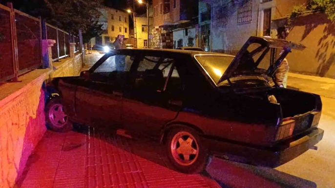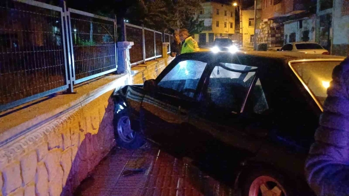 Plakasız araçla kaçan 3 şüpheli okul duvarına çarparak yakalandı