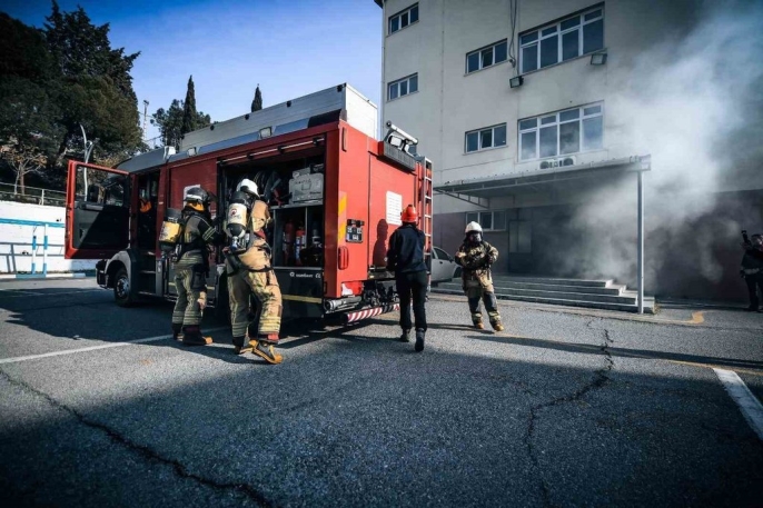 Tatbikat senaryosu gereği, 4 katlı binanın zemin katındaki bir derslikte elektrik kontağından kaynaklanan bir yangın çıktı. Kısa sürede yayılan dumanlar binayı tamamen sardı. Durumun 112 Acil Çağrı Merkezi'ne bildirilmesinin ardından, itfaiye ekipleri hızla olay yerine intikal etti.