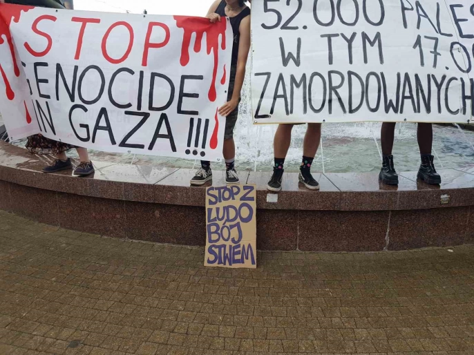 Maç sırasında bazı taraftarlar salonda Filistin bayrakları açarak Filistin halkını destekleyen sloganlar attı. Avrupa Parlamentosu Polonya Milletvekili Robert Biedron da sosyal medya hesabından yaptığı 'Polonyalılar Gazze cehennemine kör değil' paylaşımıyla taraftarların protestosunu destekledi.