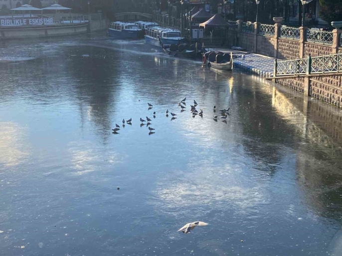 Eskişehir'in simgesi haline gelen Porsuk Çayı, soğuk havaların etkisiyle buz tuttu. Ancak bu doğal güzellik, insanların duyarsız davranışları yüzünden kötü bir görüntüye büründü. Buzlu yüzeyin üzerinde biriken atıklar, şehrin kalbinde adeta bir çöp yığını oluşturdu.