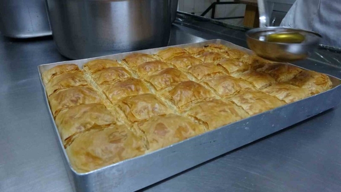 Doğu Karadeniz Bölgesi'nin geleneksel tatlılarından Laz böreği, Ramazan ayında sofralarda daha çok yer buluyor. Yufkaların arasına konulan muhallebi ve üzerine dökülen şerbetle hazırlanan bu börek görünümlü tatlı, hem ismiyle merak uyandırıyor hem de kendine has lezzetiyle damakları şenlendiriyor. Özellikle Ramazan'da hafifliğiyle tercih edilen Laz böreğinin sırrı ise tamamen doğal ürünlerin kullanılması.