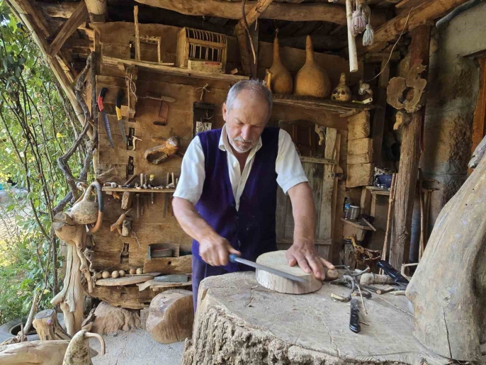 Öztürk, doğada gezerken karşılaştığı ağaç köklerine ve parçalarına bambaşka bir gözle baktığını ifade ediyor. "Ağaçlara bakıp onlardan ne gibi bir eser çıkarabilirim diye düşünüyorum" diyen sanatçı, topladığı bu doğal malzemeleri özenle törpüleyip zımparalayarak, tamamen kendi hayal gücünün yönlendirmesiyle şekillendiriyor. Eski bir ahırı adeta bir sanat atölyesine dönüştüren Öztürk, burada ceviz kütüklerinden canlı hayvan figürleri, su kabaklarından ise estetik değeri yüksek dekoratif eserler ortaya çıkarıyor.