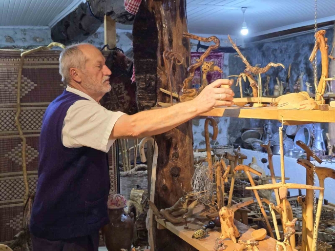 Yozgat'ın Aydıncık ilçesinde yaşayan ve kültür bakanlığı sanatçısı unvanına sahip Raşit Öztürk, tam 19 yıldır doğadan topladığı ağaç parçalarına adeta yeniden hayat veriyor. Emekliliğinin ardından yerleştiği Kösrelik köyünde, ormanlardan ve dağlardan topladığı kökleri, dalları sanatsal birer objeye dönüştüren Öztürk, bu özgün yolculuğuna kağnı figürleriyle başlayıp, zamanla kök bastonlar ve birbirinden ilginç hayvan figürleriyle devam ettirdi.