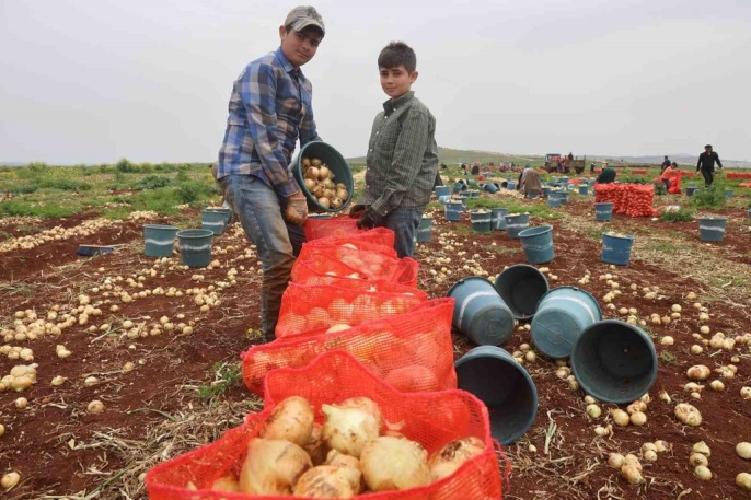 Hatay’ın Reyhanlı ilçesinde, Suriye sınırına sıfır noktasında, bereketli soğan hasadı başladı. Bu yıl, dönüm başına 5 ton rekolte bekleniyor ve tarladaki fiyatlar 25 TL olarak belirlenmiş durumda.