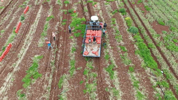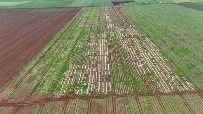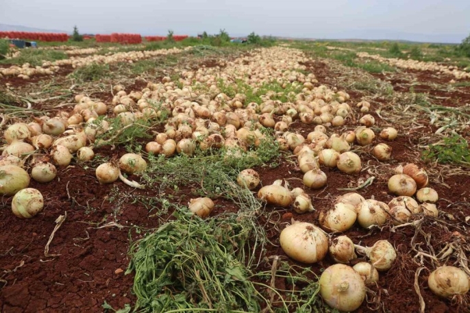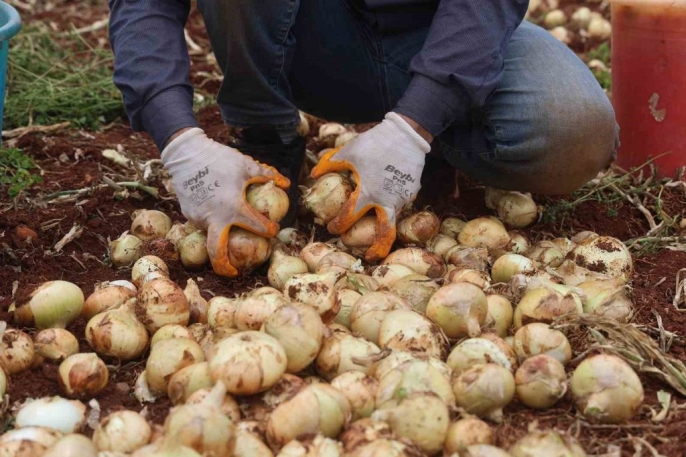 Baharın gelişiyle birlikte Hatay’ın verimli topraklarında ürünler hasat edilmeye başlandı. Reyhanlı ilçesinin Bükülmez Mahallesi'nde 500 dönümlük bir alanda ekilen soğan, geçen yıla oranla daha fazla yağış alarak yüksek bir rekolte sunuyor. Tarladan çıkan soğan, 22 TL ile 25 TL arasında alıcı buluyor.