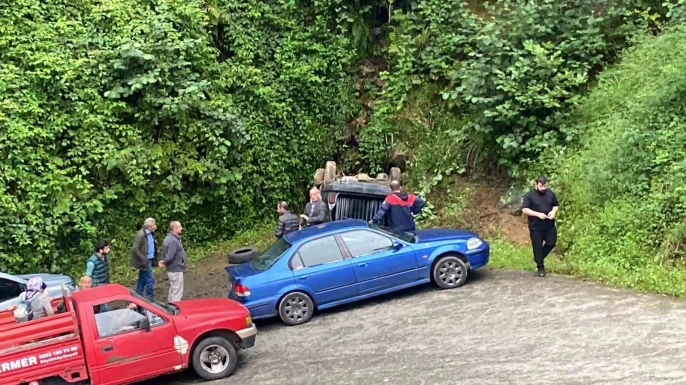 Rize'de freni patlayan otomobil takla attı: 3 yaralı