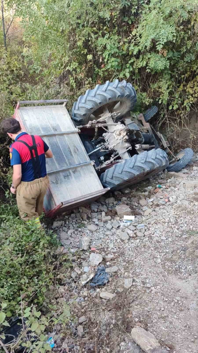 Kazada araçta yolcu olarak bulunan eşi Y.T., hafif şekilde yaralandı. Aynı gün gerçekleşen ikinci kazada ise R.A. tarafından kullanılan bir traktör, sürücünün kontrolünü kaybetmesi nedeniyle şarampole yuvarlandı.