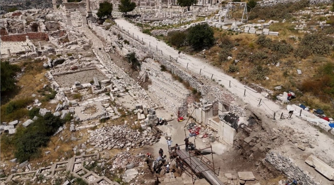 Burdur'un Ağlasun ilçesindeki Sagalassos Antik Kenti'nde yürütülen kazılarda, yaklaşık 4 metre toprak altında bulunan bir odeon gün yüzüne çıkarılıyor. UNESCO Dünya Mirası Geçici Listesi'nde yer alan ve geçmişi M.Ö. 3000’lere uzanan antik kentte, Roma İmparatoru Hadrianus'a adanan 1892 yıllık çeşme çevresinde yapılan çalışmalar sürüyor.