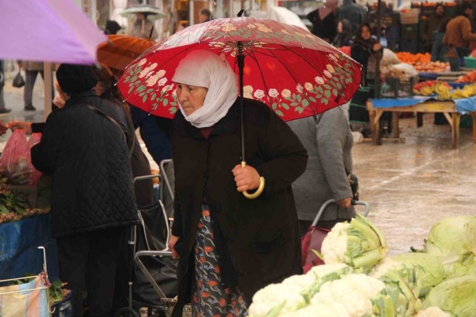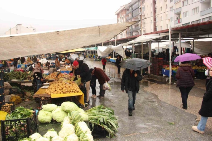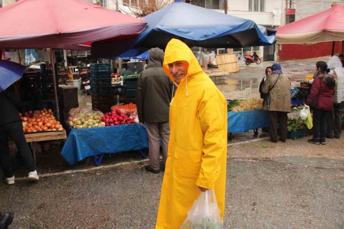 Yağmura rağmen şemsiyeleriyle pazarın yolunu tutan vatandaşlar, tezgahlar arasındaki boşluklarda alışverişlerini yapmaya çalıştı. Elinde şemsiyesi, diğer elinde pazar arabasıyla yağmur altında ilerleyen vatandaşların görüntüleri, objektiflere ilginç anlar olarak yansıdı. Meteoroloji'nin 'sarı kod' ile uyardığı ve metrekareye 75 kilograma varan şiddetli sağanak, fırtına ve hortum riski bulunduğunu belirttiği bu günde, vatandaşların azmi dikkat çekti.