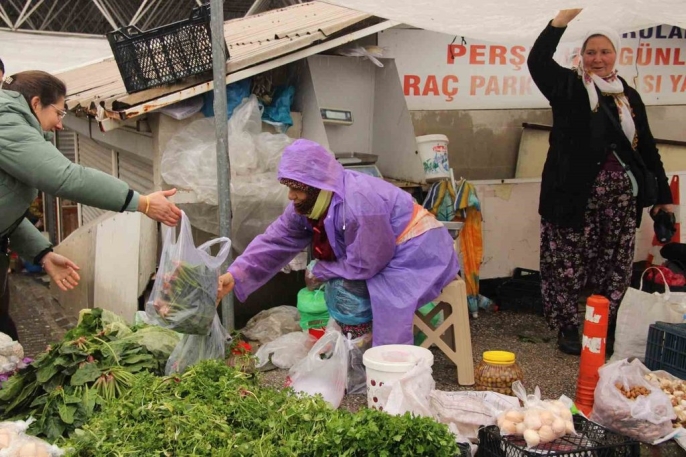 Sağanak yağmur pazarcıları vurdu, ama Muğlalılar alışverişten vazgeçmedi!