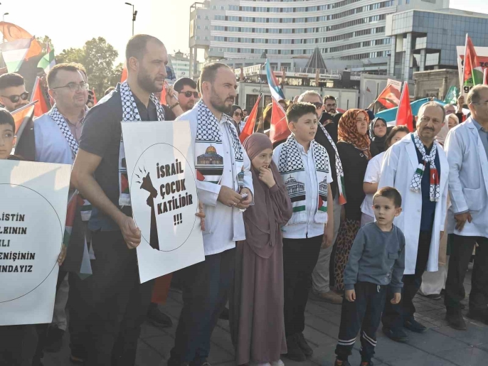 Kayseri'de görev yapan sağlık çalışanları, Gazze'de yaşanan soykırım ve abluka protesto etmek amacıyla önlüklerini giyerek bir yürüyüş gerçekleştirdi.